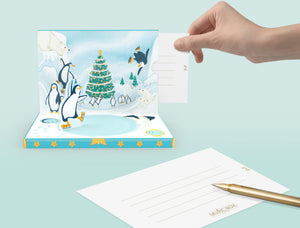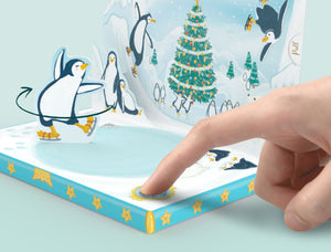 Open the Music Box Card to reveal a beautifully festive, musical storytelling scene. Listen to the music and watch the cute penguin magically skate around and around to a classic Christmas tune.