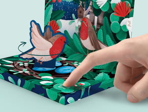 Open the Music Box Card to reveal a beautiful musical storytelling scene. Listen to the music and watch the robins build their cosy nest to keep out the frost and protect their eggs.