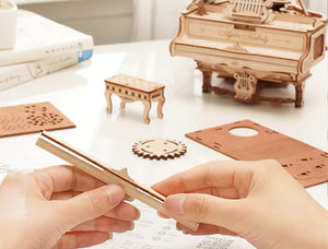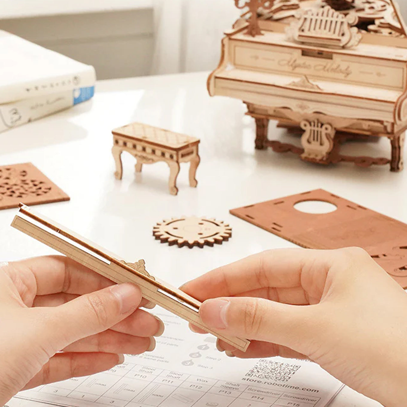 Step into a world of enchantment with this intricately designed Magic Piano 3D wooden puzzle. Inspired by Victorian elegance and classical music boxes, this model combines sophisticated mechanics with artistic detail to create a captivating build-and-display experience.