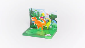 Open the Music Box Card to reveal a beautiful musical storytelling scene. Listen to the music and watch the tyrannosaurus stomp around the prehistoric landscape.