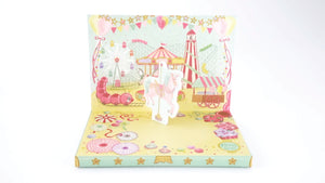 Open the Music Box Card to reveal a beautiful musical storytelling scene. Listen to the music and watch the carousel horse twirl around and around to classic fairground music.