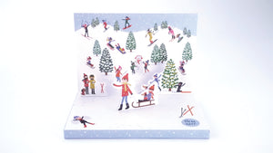Open the Music Box Card to reveal a beautifully festive, musical storytelling scene. Listen to the music and watch the character magically travel around and around to a classic Christmas tune.