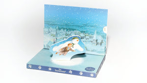 Open the Music Box Card to reveal a classic festive, musical storytelling scene. Listen to the music and watch The Snowman magically fly around and around to the unforgettable tune 'Walking in the Air'.