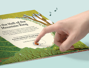 Discover the spellbinding magic of The Mountain King in this musical retelling of Peer Gynt – push the button on each beautiful scene to hear the vivid sound of an orchestra playing from Grieg’s score.
