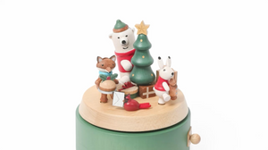 This festive music box is a lovely decorative piece that will bring a whimsical, festive atmosphere to your home. Watch as the rabbit, fox and friends all exchange their Christmas gifts under the tree.