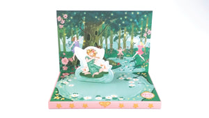 Open the Music Box Card to reveal a beautiful musical storytelling scene. Listen to the music and watch the fairy magically flat around and around to the enchanted music.