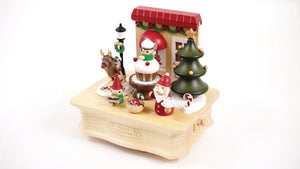 Combining nostalgia and a classic design, this hand wound music box makes a great addition to any room as a decoration on a shelf. The clockwork base mechanism enables the cupcake and reindeer to move with the music.