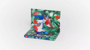 Open the Music Box Card to reveal a beautiful musical storytelling scene. Listen to the music and watch the robins build their cosy nest to keep out the frost and protect their eggs.