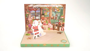 Open the Music Box Card to reveal a beautifully festive, musical storytelling scene. Listen to the music and watch Father Christmas magically travel around and around to a classic Christmas tune.