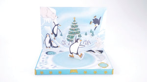 Open the Music Box Card to reveal a beautifully festive, musical storytelling scene. Listen to the music and watch the cute penguin magically skate around and around to a classic Christmas tune.