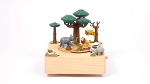 This beautiful safari themed music box is a lovely decorative piece that will bring a soft, dreamy atmosphere to your child's room. The little jeep moves around the animals.